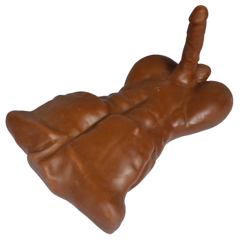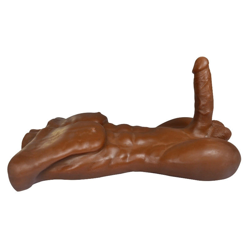 Pectoral and abdominal muscles have been reproduced with amazing realism, as well as the penis and testicles. The back part is completely flat, making it perfect for placing it on the bed or on any uneven surface. Unlike most dildos, it does not need a suction base, and it offers much more stability and resemblance with reality, showing the upper part of a man's body where to place your hands and even rub yourself for more excitement.
