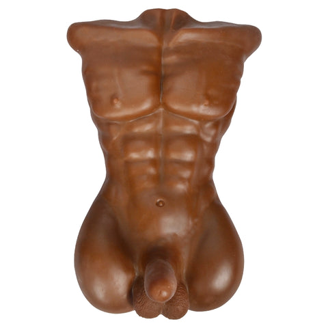 An Upper Body Part that recreates a Black male's chest, abdomen, and genitals area.