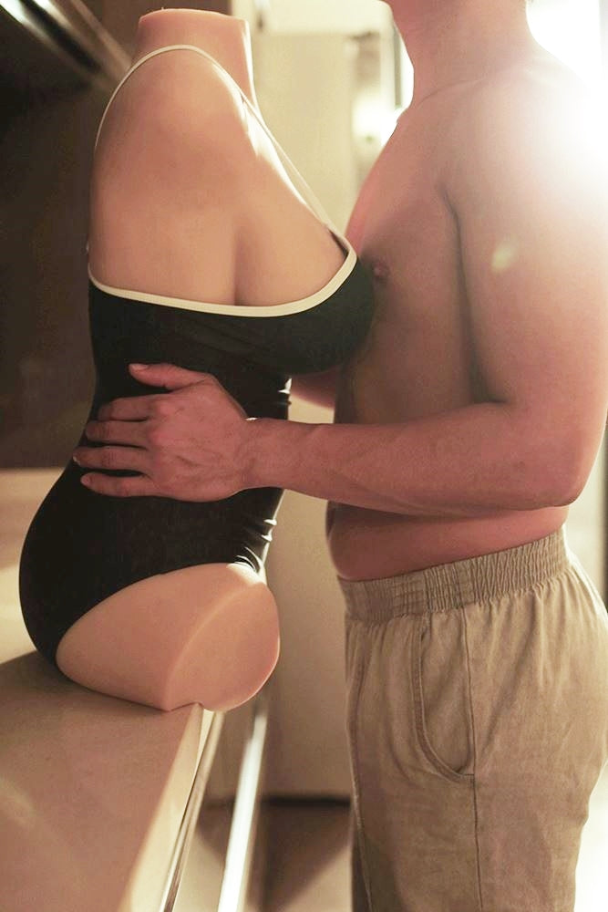 It is a 1:1 scale replica of a real woman's torso, from her neck to the beginning of her legs. It offers two orifices for double-fun imitating the vaginal and anal canals.