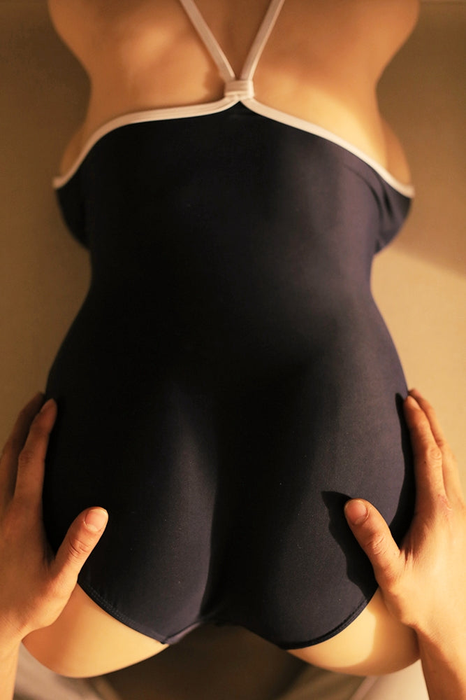 An Upper Body Part that recreates a female body's section comprising the bust, waist, hips, buttocks, and part of the thighs. In this case, the thighs end in a flat, clean cut, what gives name to the toy.