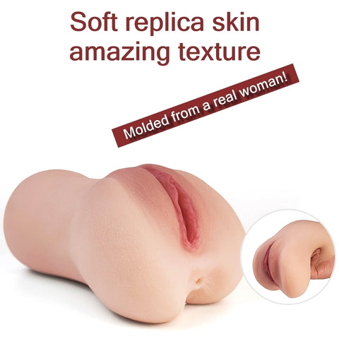 Molded from a real woman's body, with its clitoris and labia, it reproduces to perfection the most intimate part of a female's body on the outside and the inside. It offers two orifices for double fun, and it recreates with accurate realism the vaginal and anal canals. The g-spot and rugged internal structures have been duplicated and enhanced to maximize pleasure, producing an intense sensation that can get off-guard even the most experienced lover. That's the reason why the Perfect Vagina is perfect for training.